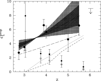 the IGM. The squares show the estimated contribution from QSOs assuming